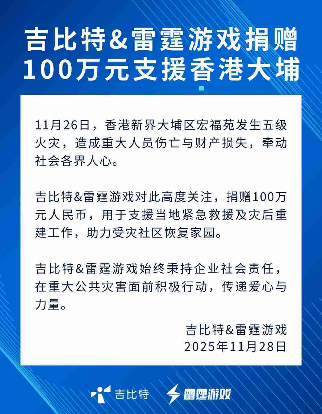 • 公司新聞 35273&雷霆游戲捐贈100萬元 支援香港大埔火災救援及災后重建