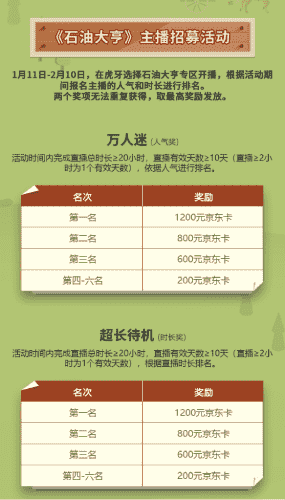 除了“油王”爭霸賽,,精英主播招募活動亦同步開啟!!!!賽事分時長獎和人氣獎,,獎勵同樣豐厚!!