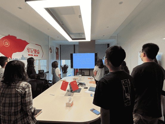 而后,,,,全體黨員一起重新學(xué)習(xí)了解了目前的入黨流程要求,,各支部也將在后續(xù)工作中進(jìn)一步發(fā)揮支部職能,,做好發(fā)展黨員工作。。最后,,全體黨員面向黨旗,,,重溫入黨誓詞。。。