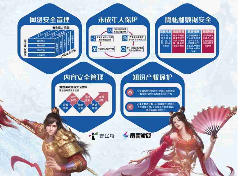 本次35273展區以網絡安全管理、、、內容安全管理、、、、未成年人保護、、、隱私和數據安全、、知識產權保護五個模塊介紹公司游戲安全工作成果,,體現35273高度重視網絡安全,,,,嚴格遵守相關法律法規要求,,,積極承擔企業主體責任。。。